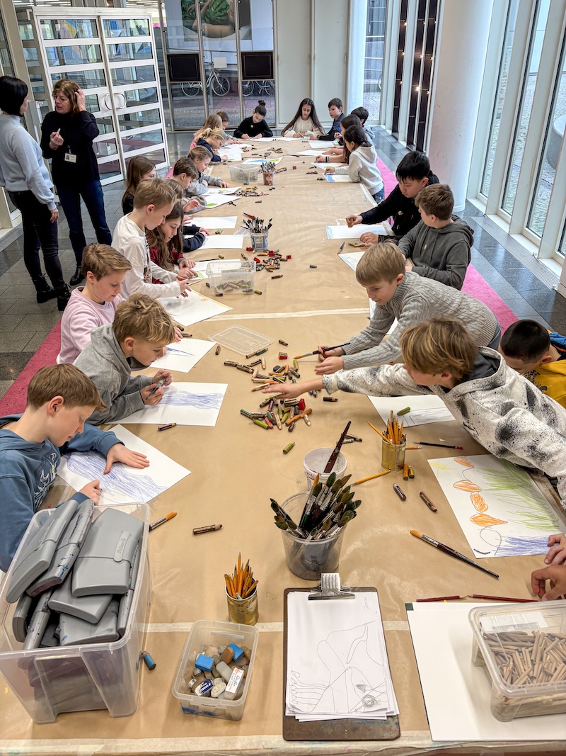 Besonders schön war, dass die Kinder während der Führung aktiv eingebunden waren: Mit viel Neugier und Begeisterung fertigten sie eigene Skizzen zu ausgewählten Natur- und Landschaftsbildern an und setzten sich intensiv mit einzelnen Kunstwerken auseinander.