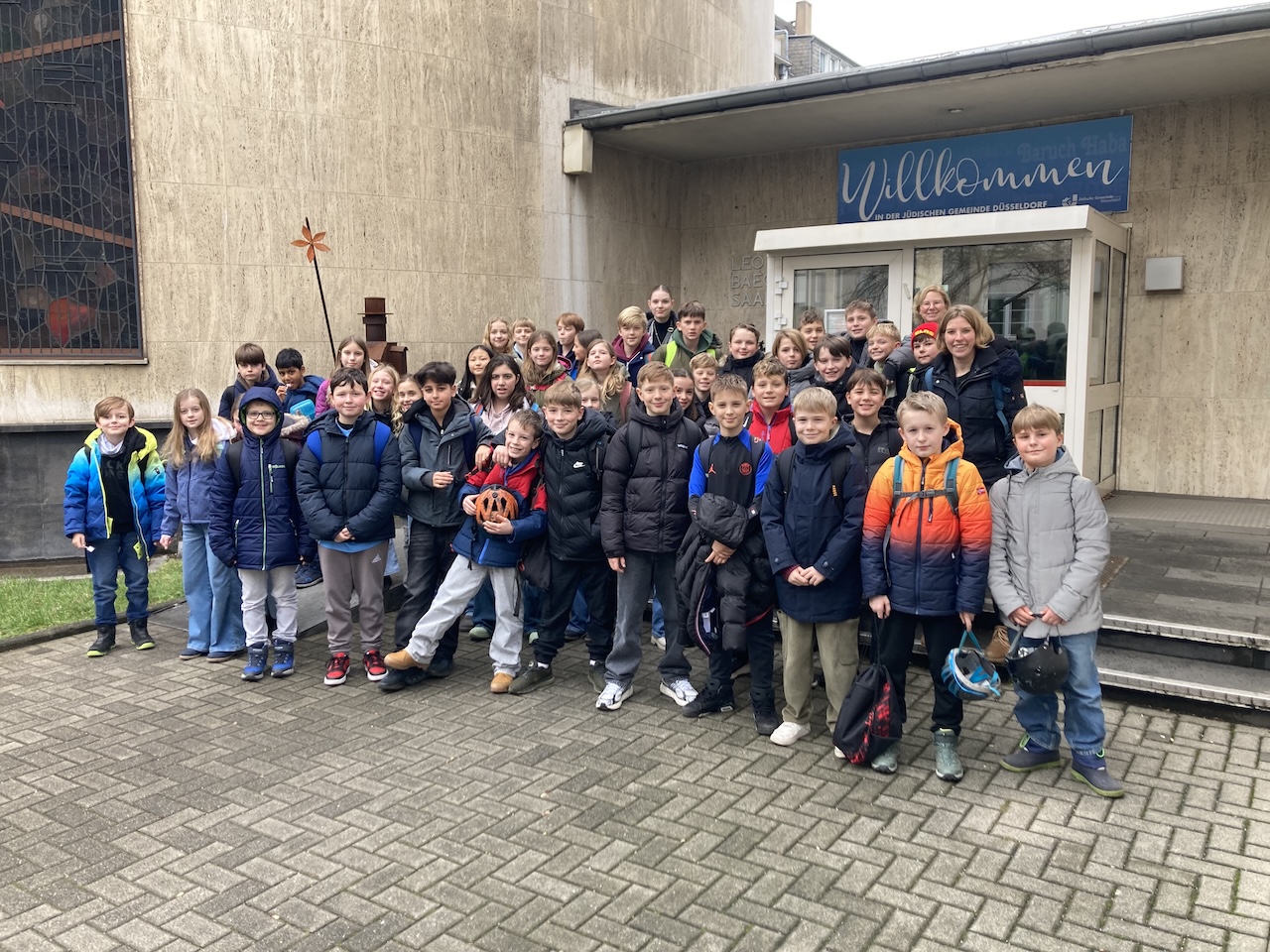 Am 15. Januar besuchten die katholischen Religionskurse der Jahrgangsstufe 5 zusammen mit Frau Paschmanns, Frau Brune und Frau Holbusch (Praxissemesterstudentin) die Synagoge in Düsseldorf. Zuerst durften die Schülerinnen und Schüler auf eigene Faust die Synagoge erkunden um anschließend den Rabbi mit ihrem Fragen zu löchern. Dieser beantwortete alle Fragen geduldig und zeigte den Schülerinnen und Schülern anschließend noch die Thora-Rollen und las auch ein kleines Stück daraus auf Hebräisch vor. Gebannt lauschten die Schülerinnen und Schüler, bevor es nach einer kleinen Stärkung mit dem Bus wieder zurück nach Kaarst ging. Der Synagogenbesuch fand im Kontext der Projektwochen zur Wanderausstellung „we, the six million“ statt.
