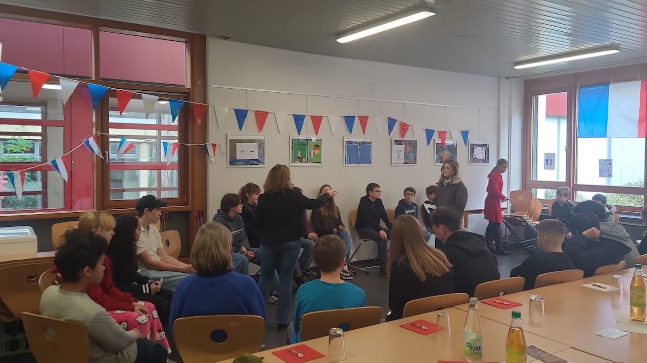 Auch Kreativität und Teamgeist kamen nicht zu kurz: Beim Sport- und Backprojekt ging es sowohl um Bewegung als auch um gemeinsames Genießen. Die Schülerinnen und Schüler gestalteten außerdem ein eigenes Glas, um die selbstgebackenen Plätzchen mit nach Hause nehmen zu können – ein Andenken an die gemeinsame Zeit. Zum Abschluss der Austausch-Woche wurde im Bebop gefeiert. Die Stimmung war großartig, und es fiel vielen schwer, sich zu verabschieden. Doch der Abschied ist nur vorübergehend – schon im nächsten Halbjahr steht der Gegenbesuch in La Madeleine an, auf den sich alle jetzt schon freuen.